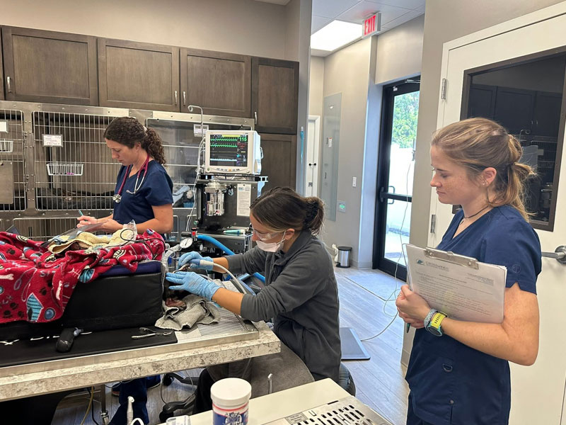We use the same monitoring equipment used in human hospitals to make sure that we are keeping your pet safe during their anesthetic event. Two technicians are assigned to every surgery patient to insure they are adequately taken care of. We also limit our surgery patients to 1-2 max a day to make sure that we can focus and be attentive to your pet and their surgical procedure.